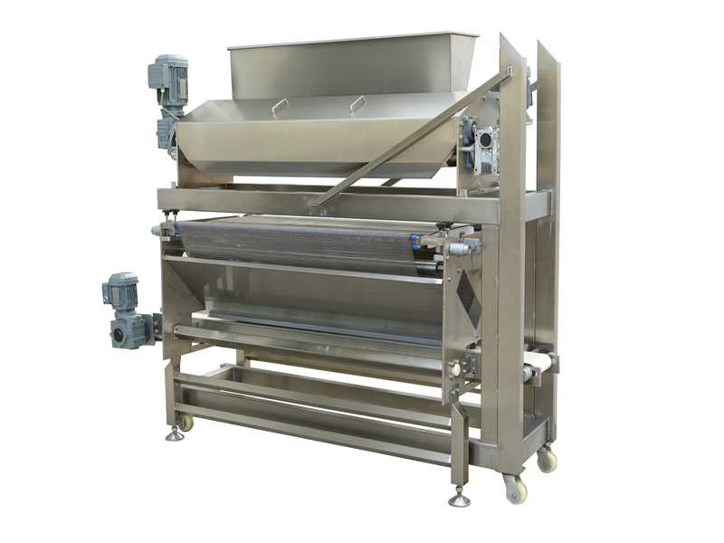 該設備應用于將固體顆粒或者粉狀調味料,鹽,糖,芝麻及果仁片等撒布在面皮或則餅干上?;厥諜C回收多余的撒布物料循環利用。